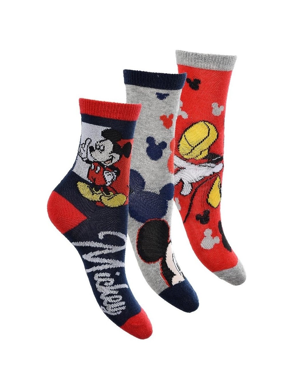 Trojbalení chlapeckých ponožek Mickey Disney - modrá/šedá/červená
