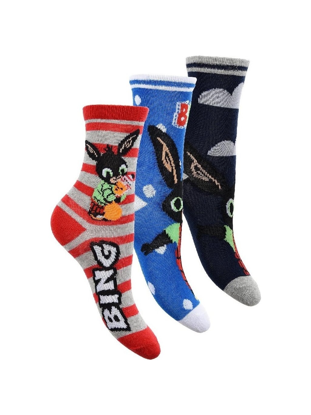 Trojbalení ponožek Bing - červená-modrá-šedá