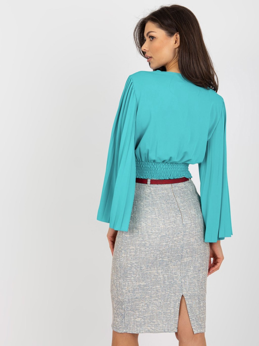 Modelka na obrázcích je vysoká 173 cm, obvod přes prsa 85 cm, obvodu pasu 62 cm a boky 95 cm.