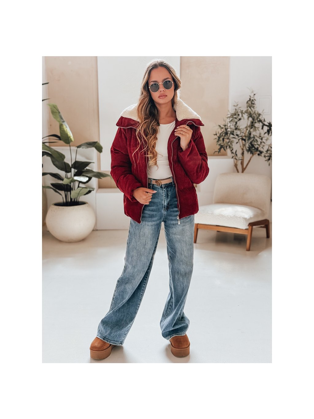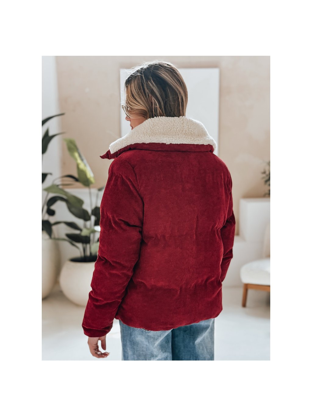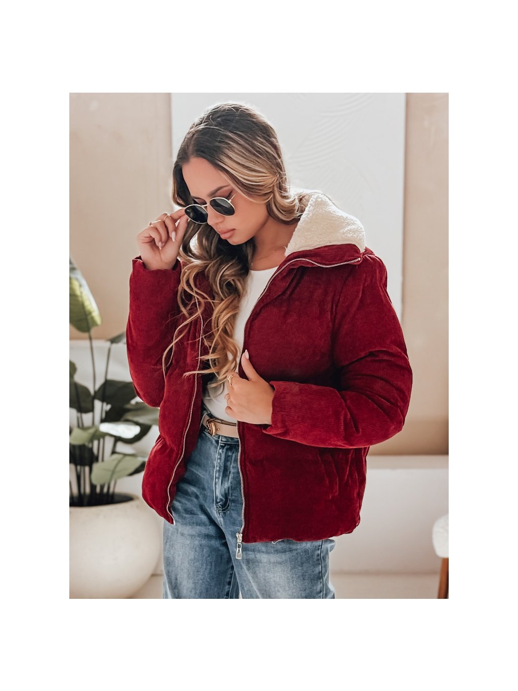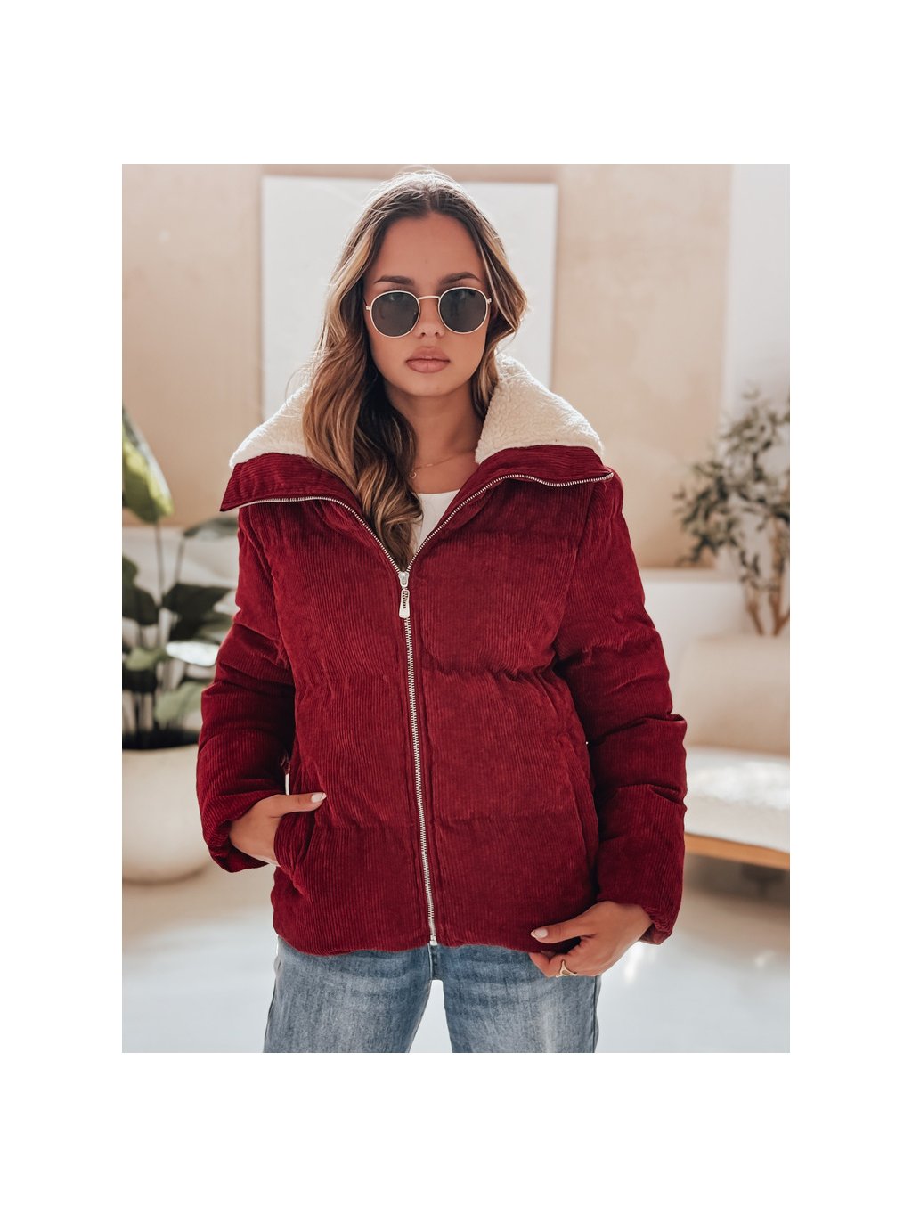 Vínová dámská manšestrová bunda TRENDYGLAM