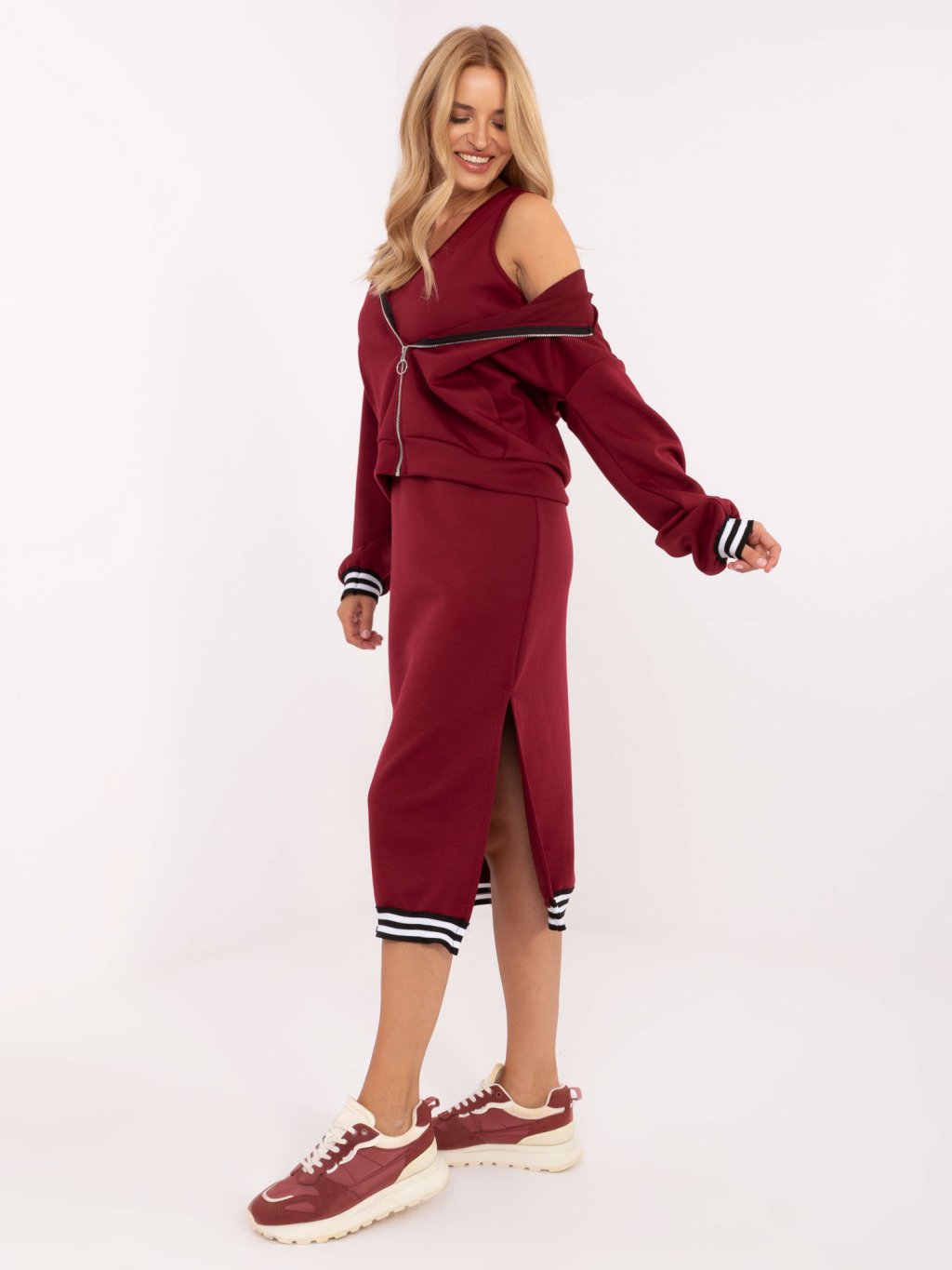 Vínová dámská viskózová dvoudílná souprava s ozdobnými manžetami