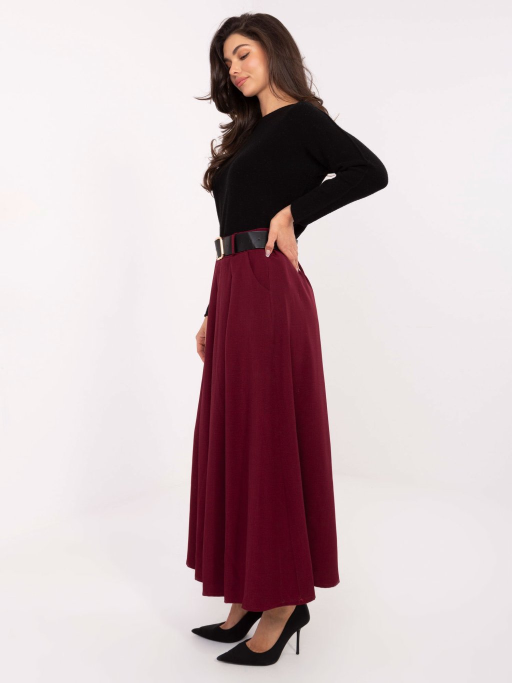 Vínová skládaná viskózová sukně