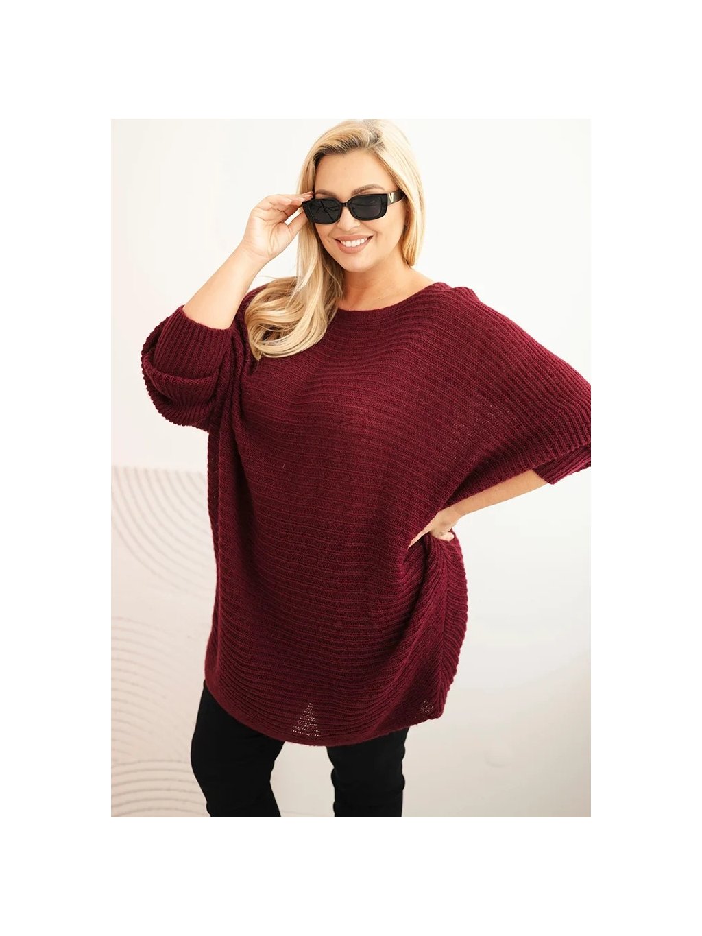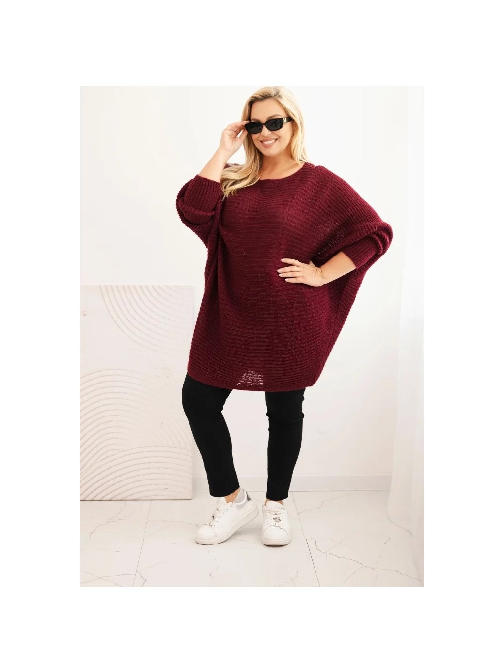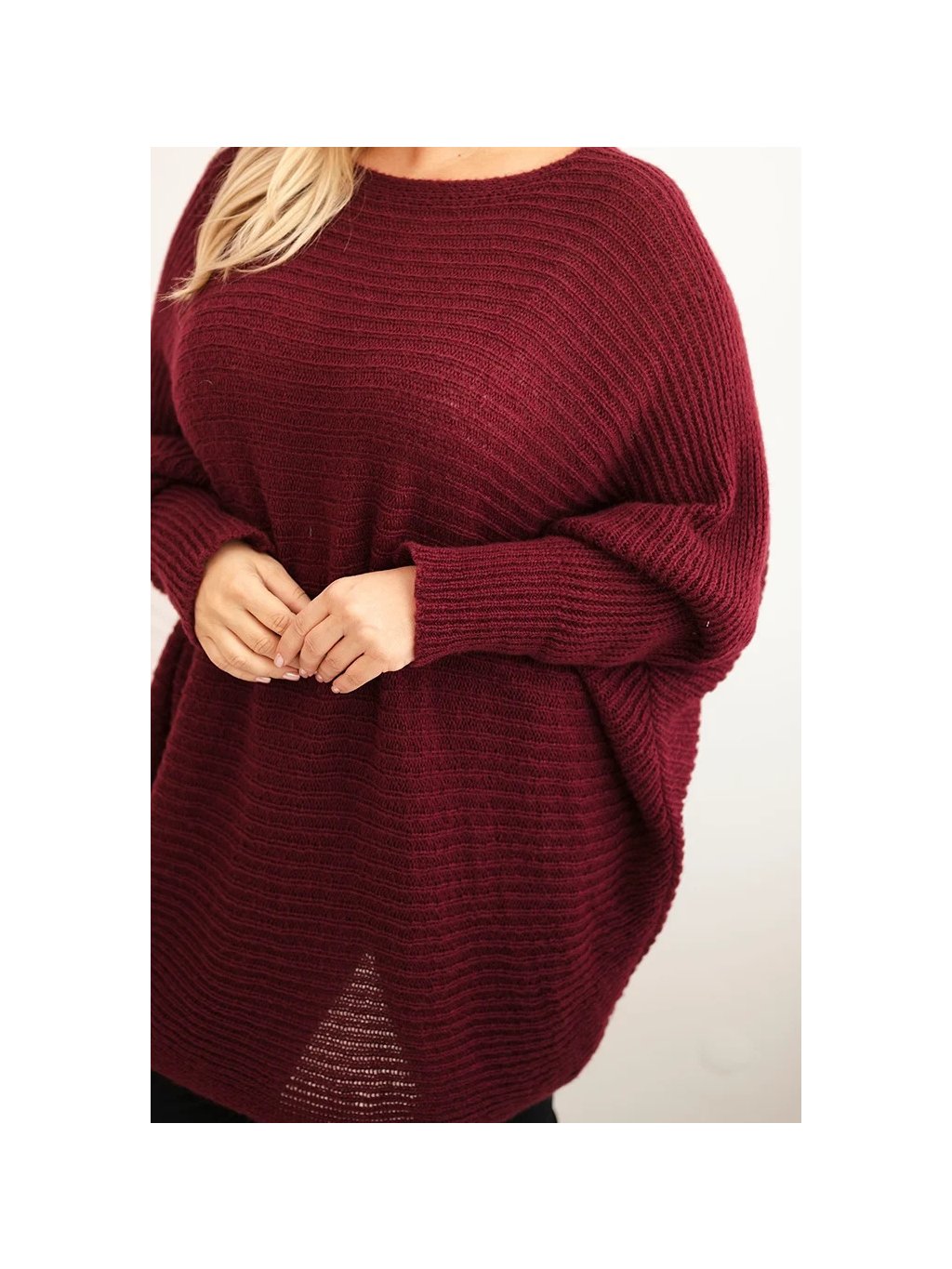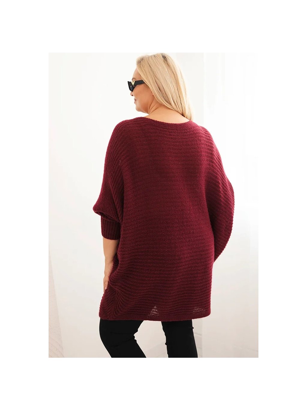 Vínový dámský pletený plus size svetr s příměsí mohéru