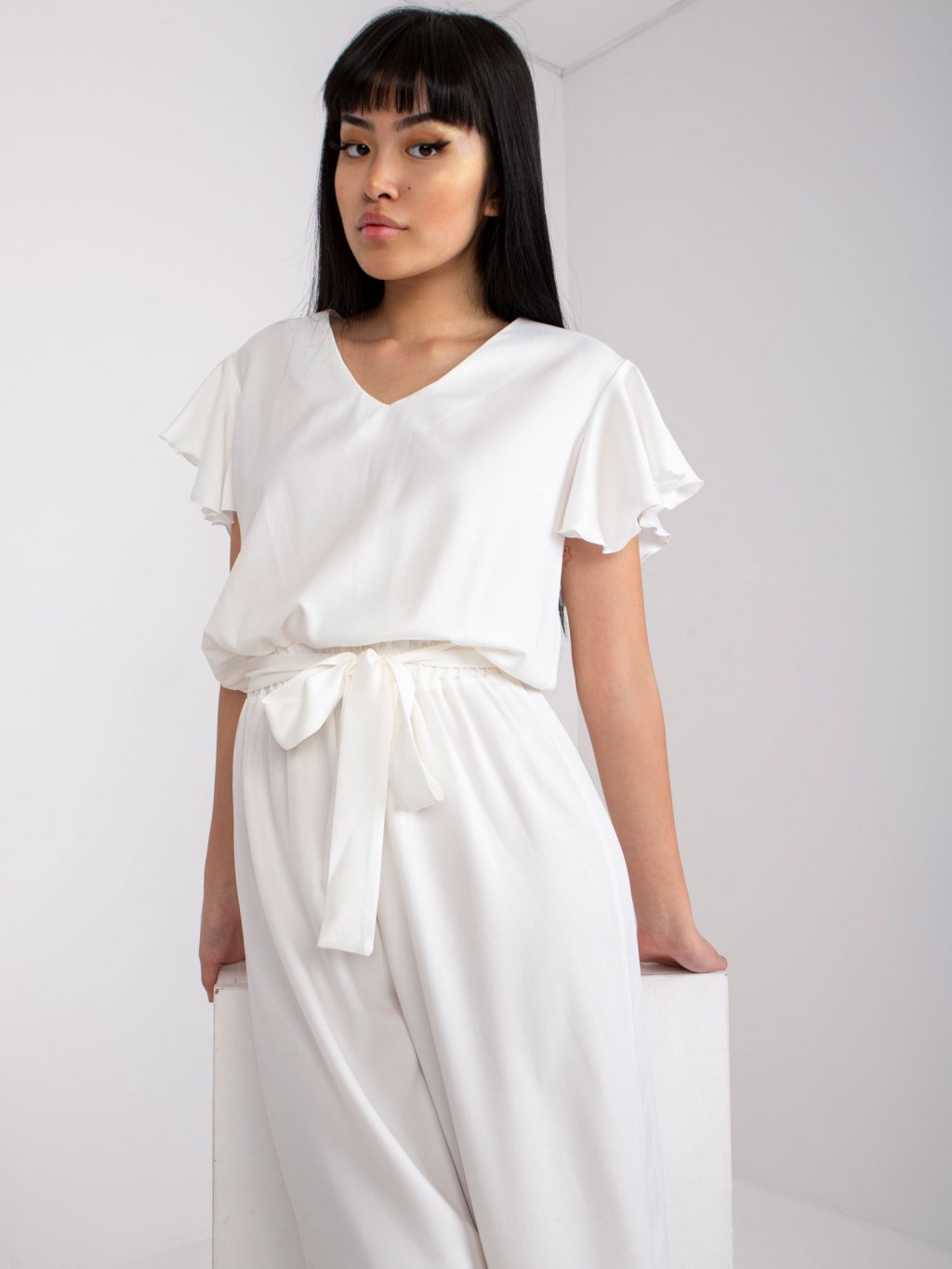 Modelka na obrázcích je vysoká 167 cm, obvod přes prsa má 73 cm, obvod pasu 64 cm a přes boky 91 cm.