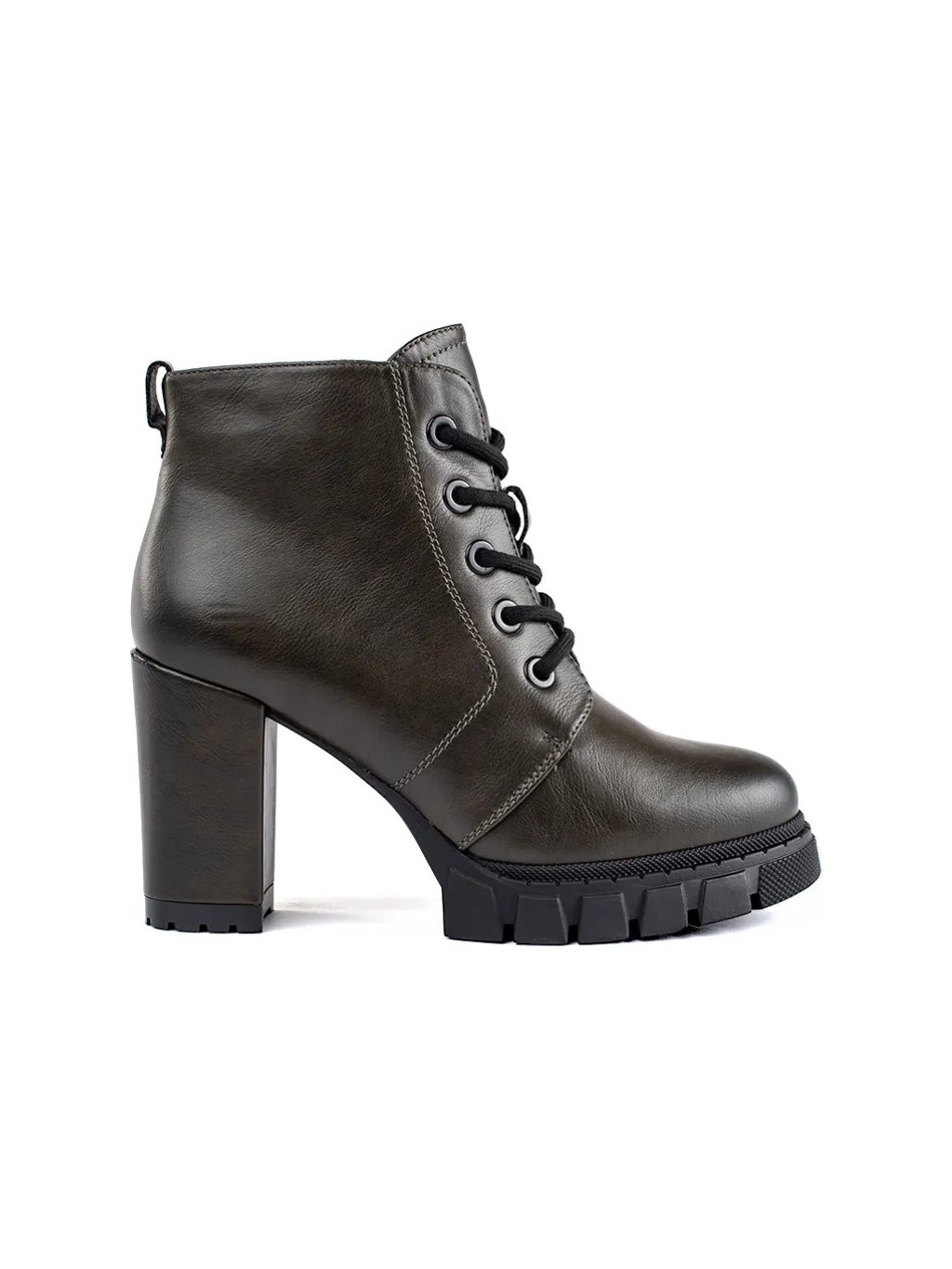 Vysoké tmavě zelené dámské kotníkové boty na sloupku