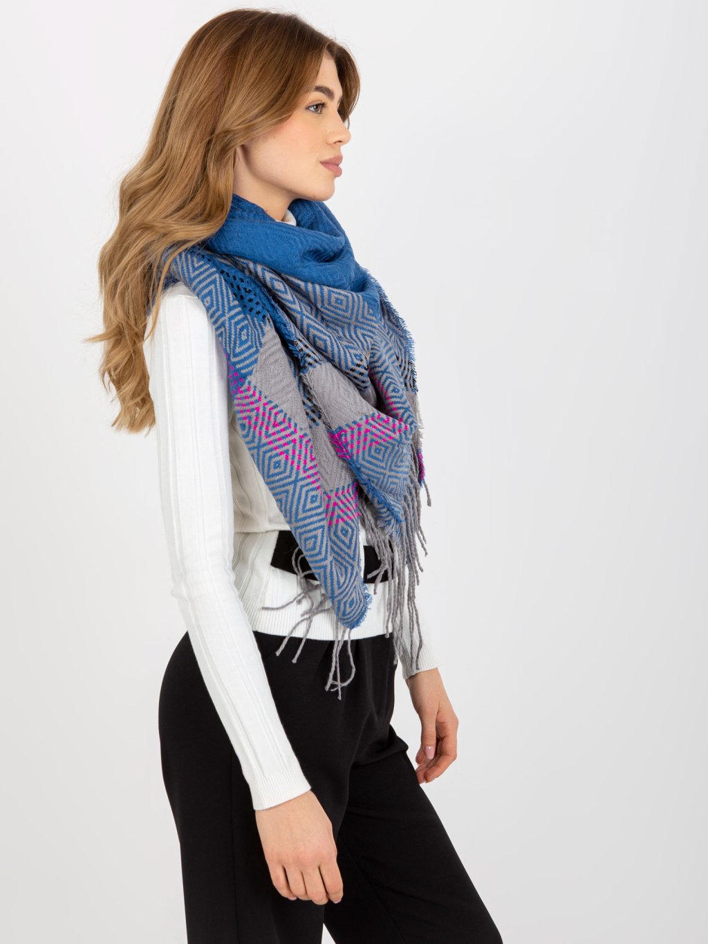 Vzorovaná šála - modrá/šedá