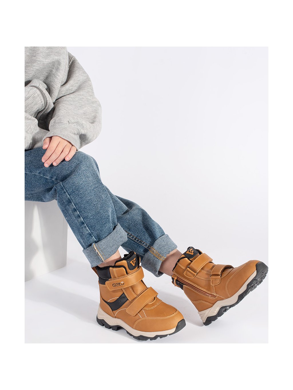 Zateplené chlapecké camel kotníkové boty na suchý zip