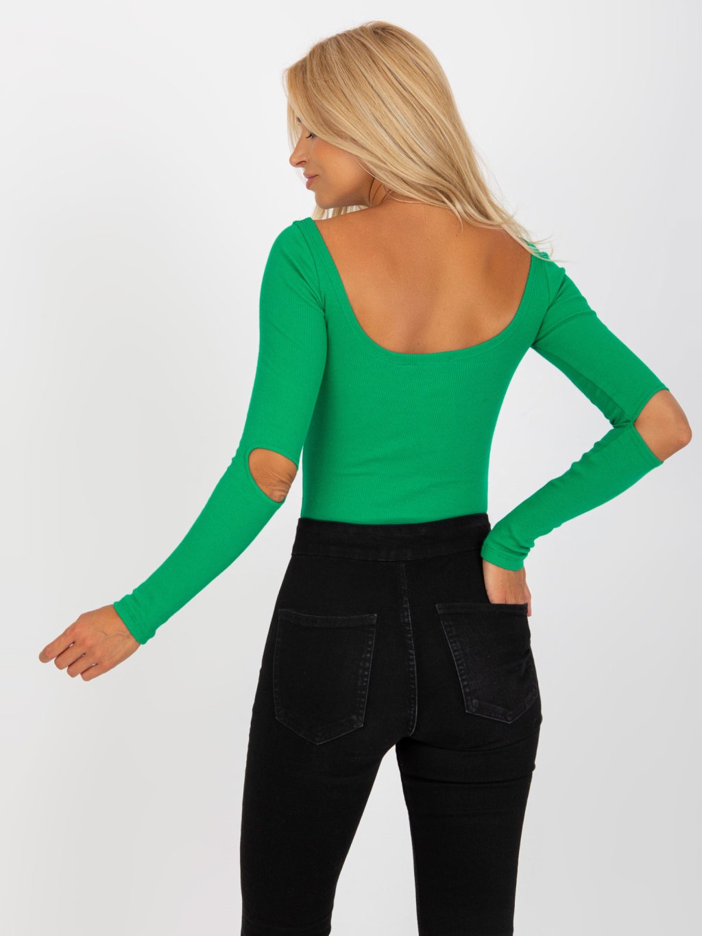 Zelená halenka s průstřihy na loktech