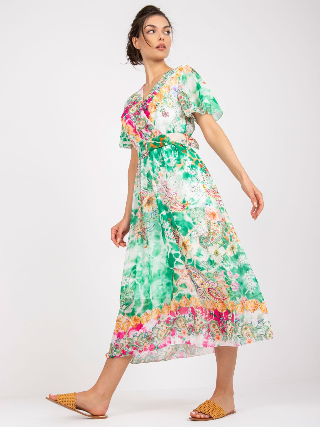 Zelené lehké midišaty s opaskem