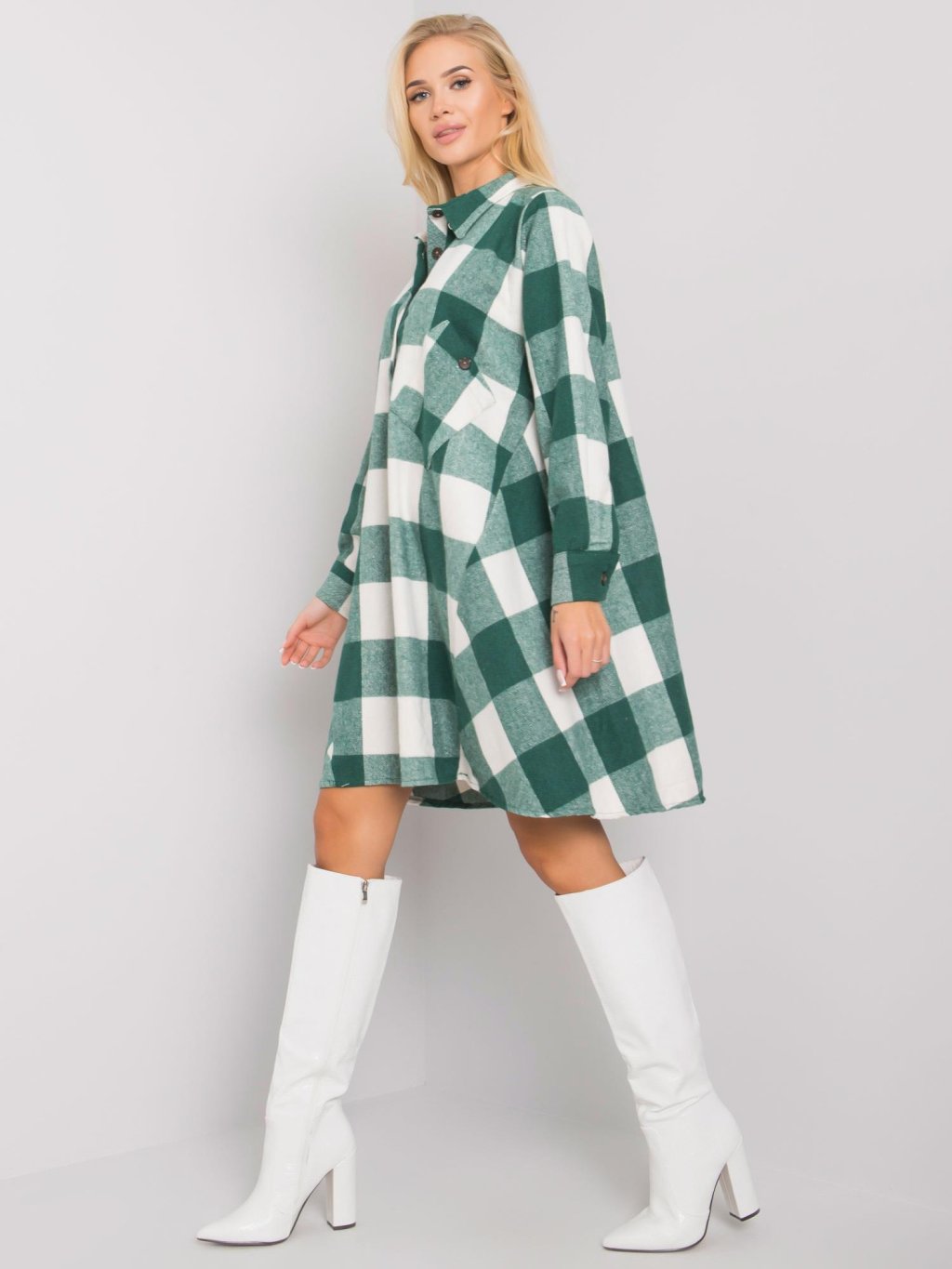 Zeleno-bílé kostkované košilové šaty