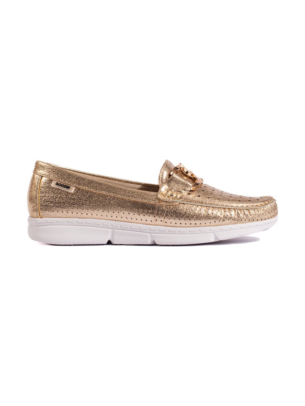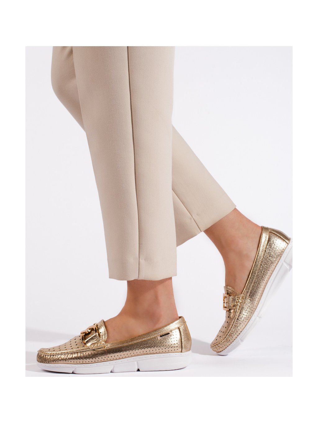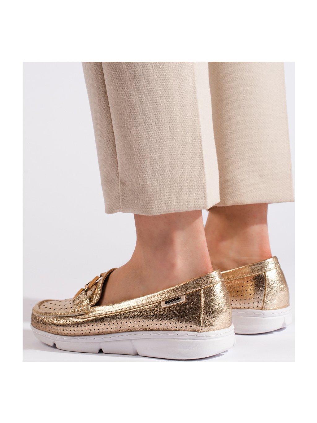 Zlaté dámské mokasíny s ozdobnou sponou