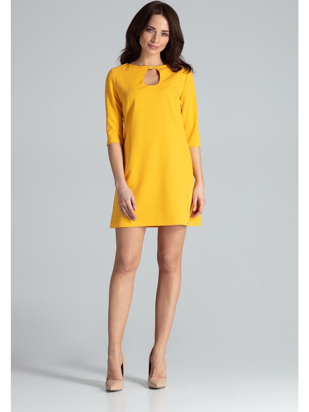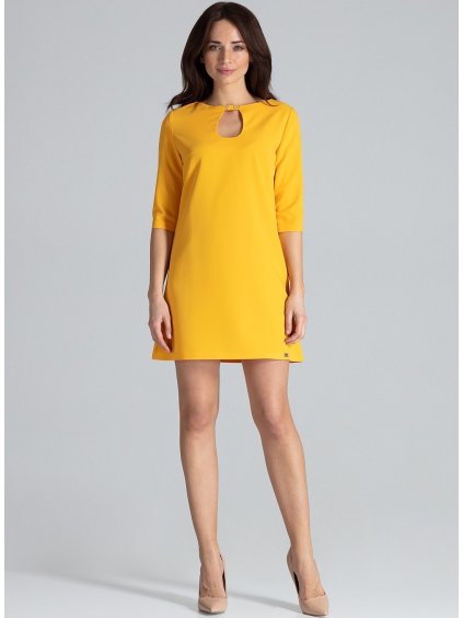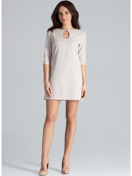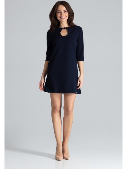- Kulatý výstřih s dekorativní zapínací sponou.
